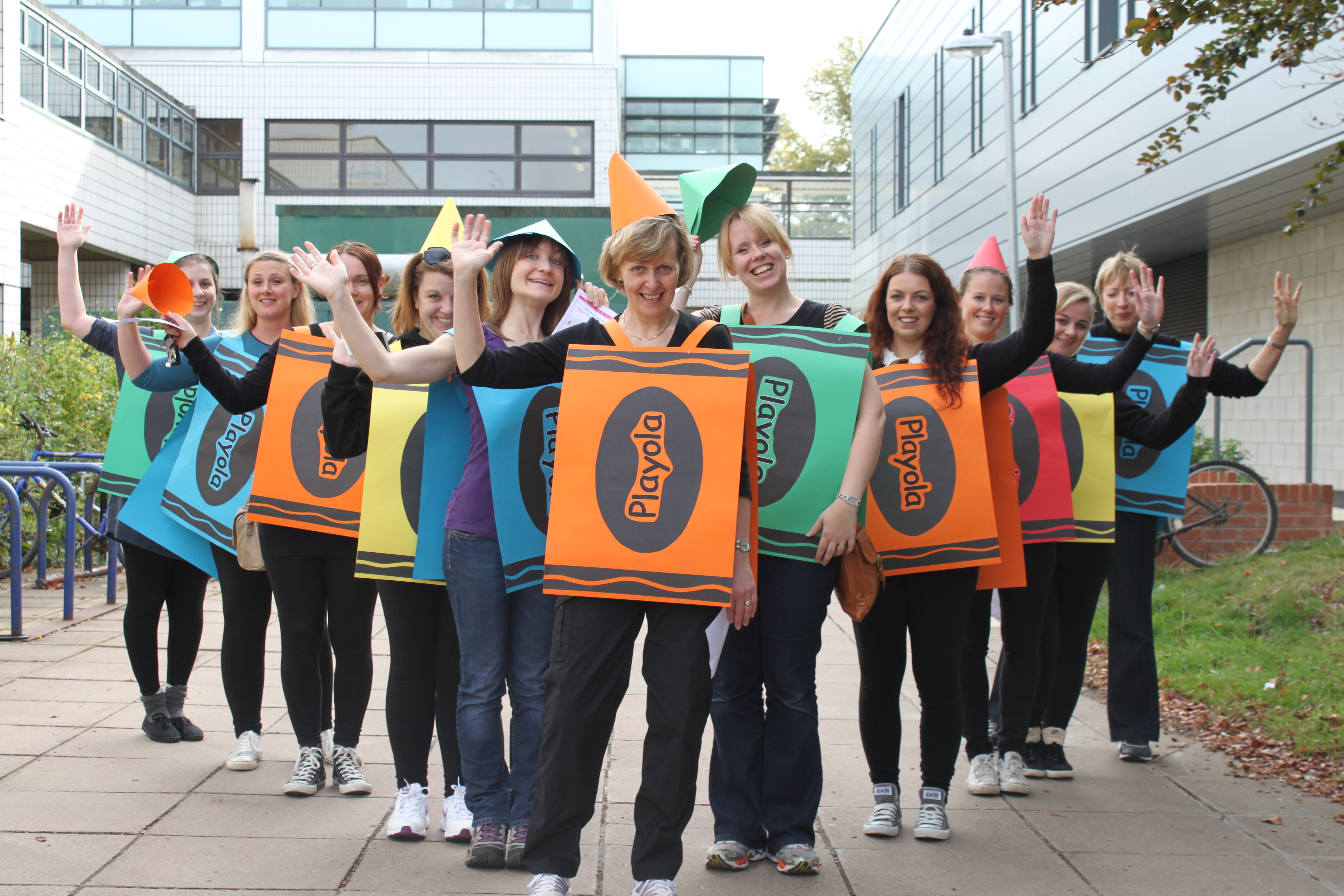 Two of the Play specialists Grace Midwinter and Sam Mortlock, wore their crayon outfit whilst working on their ward for the day! They also held a cake sale and tombola to raise awareness of the role and placed display boards throughout all of their working areas.